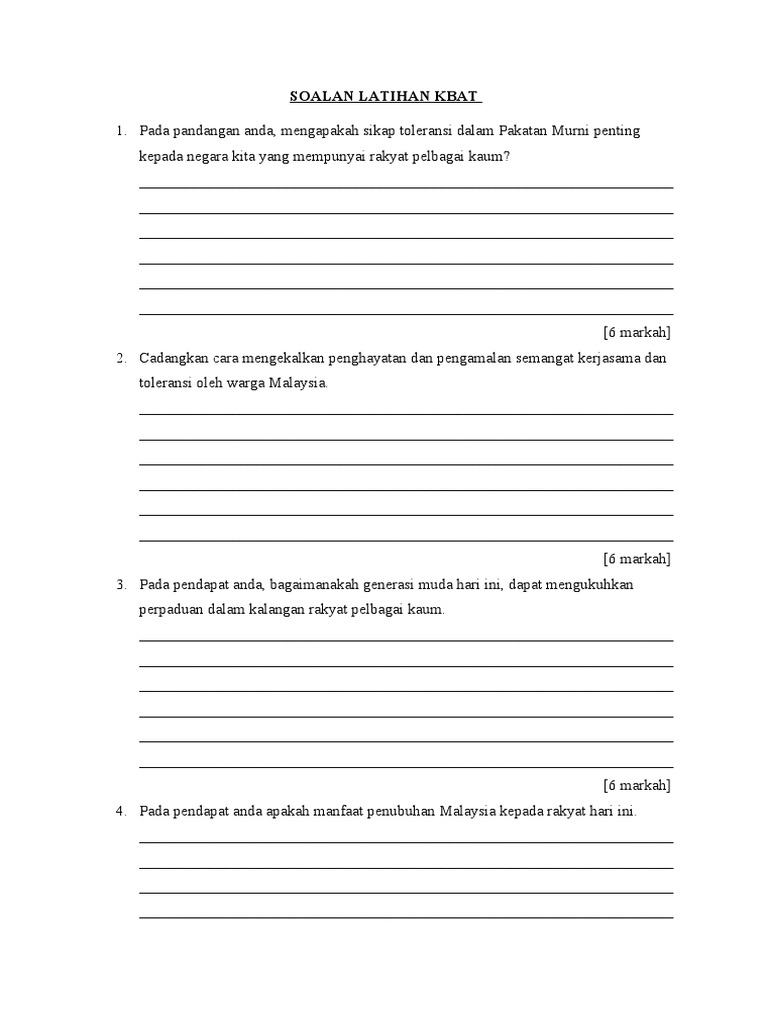 Soalan Kbat Perpaduan Kaum Tingkatan 5